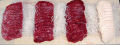 カナダ産です、写真のスライスした馬刺しは、それぞれ約100gです。